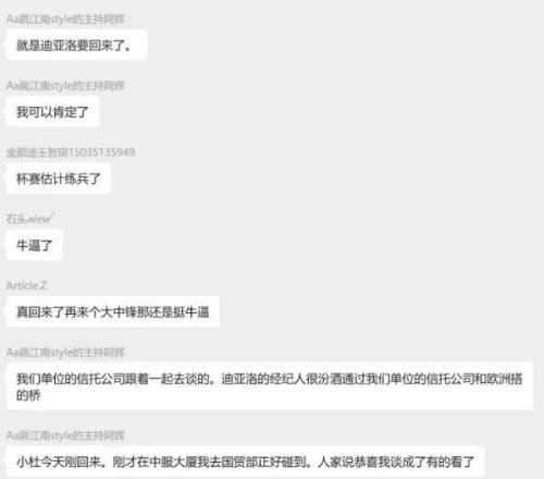 不久前有平台出现消息,传上赛季山西队强力外援迪亚洛将回归,继续为山西队效力。该聊天群中说的情况看起来不像是假的,称是通过信托公司和欧洲俱乐部搭的桥。 这一消息一经传出引起山西球迷热议,“这真能回来,不是签约了吗”,“解约是要改买断费的吧”,“能回来当然好”,说什么的都有。