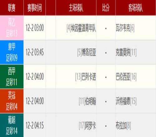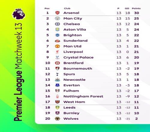 西甲 赫罗纳 1-1 皇家马德里 北京时间12月1日04:00,西甲联赛第14轮,皇家马德里客场挑战赫罗纳。上半场,姆巴佩打进一球,但是被判罚越位在先,随后奥纳西破门首开纪录。皇马半场0-1落后赫罗纳。下半场,姆巴佩点射扳平。最终皇马1-1战平赫罗纳,连续三轮联赛都取得平局,皇马目前排名积分榜第二,落后榜首1分。 英超 切尔西 1-1 阿森纳 北京时间12月1日00:30,英超联赛第13轮,切尔西在主场斯坦福桥球场迎战阿森纳。上半场,埃斯特旺错失机会,凯塞多蹬踏梅里诺染红。下半场,查洛巴头球破门,梅里诺也用头球扳平比分。最终切尔西1-1阿森纳。本场比赛过后,切尔西积24分,排到联赛第三,阿森纳积30分,继续领跑积分榜,领先第二的曼城5分。 英超 西汉姆联 0-2 利物浦 北京时间11月30日22:00,英超联赛第13轮,利物浦客场挑战西汉姆联。上半场伊萨克门前失良机,维尔茨低射造险,铁锤帮0射正,半场结束,利物浦0-0西汉姆联。下半场加克波助攻伊萨克推射打破僵局,帕奎塔两黄一红被罚下,加克波抽射锁定胜局,最终利物浦2-0西汉姆联终结三连败。 英超 水晶宫 1-2 曼彻斯特联 北京时间11月30日20:00,英超联赛第13轮,曼联客场挑战水晶宫。上半场,约罗送大礼,马特塔失良机;随后约罗铲倒马特塔送点,马特塔主罚点球破门,但被吹二次触球无效!重新主罚依然命中!半场补时,德里赫特滑倒送单刀,卢克·肖铲球封堵了恩凯提亚射门!下半场,B费任意球助攻,齐尔克泽0度角抽射破门!芒特远射破门反超!最终,曼联客场2-1逆转水晶宫,终结英超3轮不胜! 意甲 罗马 0-1 那不勒斯 北京时间12月1日03:45,意甲联赛第13轮,罗马坐镇主场迎战那不勒斯。上半场,内雷斯反击单刀破门。易边再战,巴尔丹齐失良机。最终罗马0-1那不勒斯。积分榜方面,罗马各赛事四连胜终结27分第三,那不勒斯28分追平米兰。 意甲 比萨 0-2 国际米兰 北京时间11月30日22:00,意甲联赛第13轮,比萨主场迎战国际米兰。上半场迪马尔科任意球造险,皮奇尼尼失良机,两队暂0-0战平;下半场恩佐拉失良机,劳塔罗双响,埃斯波西托和巴雷拉分别助攻,最终国米2-0比萨。 英超积分榜:阿森纳5分优势领跑 最新英超积分形势如图: 其他赛事比分: 英超 诺丁汉森林 0-2 布莱顿 英超 阿斯顿维拉 1-0 狼队 西甲 皇家社会 2-3 比利亚雷亚尔 西甲 塞维利亚 0-2 皇家贝蒂斯 西甲 塞尔塔 0-1 西班牙人 意甲 莱切 2-1 都灵 意甲 亚特兰大 2-0 佛罗伦萨 德甲 汉堡 2-1 斯图加特 德甲 法兰克福 1-1 沃尔夫斯堡 德甲 弗赖堡 4-0 美因茨 法甲 斯特拉斯堡 1-2 布雷斯特 法甲 昂热 1-2 朗斯 法甲 勒阿弗尔 0-1 里尔 法甲 洛里昂 3-1 尼斯 法甲 里昂 3-0 南特 赛事前瞻敬请留意 |