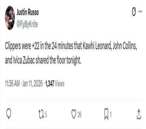 也成为21世纪以来,快船队史第二位单场至少拿到25分7板4断4帽的球员,第一位是“船长”埃尔顿-布兰德。 并且这样的表现并非偶然,科林斯过去5场比赛三分球合计23投16中,命中率69.6%,赛季三分命中率已经提升至41%。