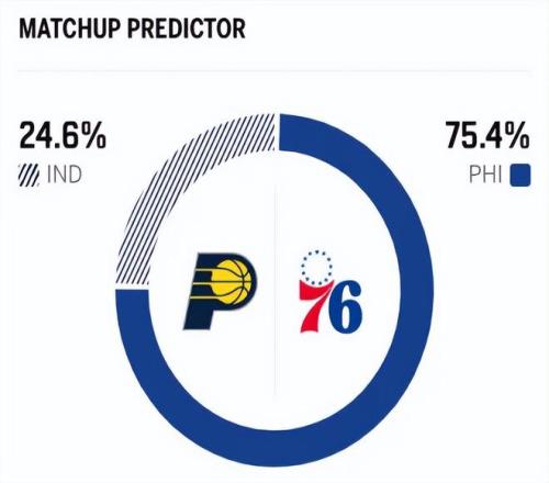 两队本赛季已有过一次交锋,上一次交手步行者以10分之差不敌76人。赛前,美媒ESPN对本场比赛进行了胜率预测,步行者胜率仅有24.6% ,劣势明显,76人队胜率则高达75.4% 。