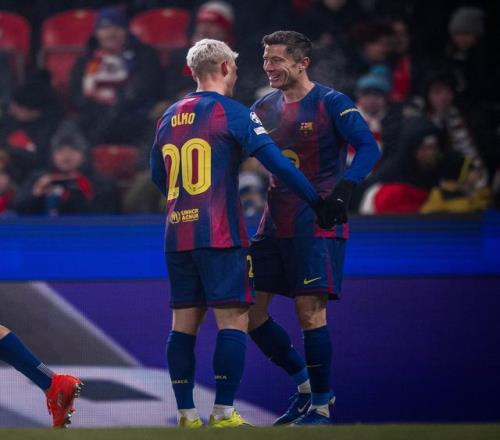 欧冠联赛阶段第7轮,巴塞罗那客场4-2击败布拉格斯拉维亚,莱万打入一球,据统计,莱万成为第四位代表两支不同球队欧冠进球20+的球员。